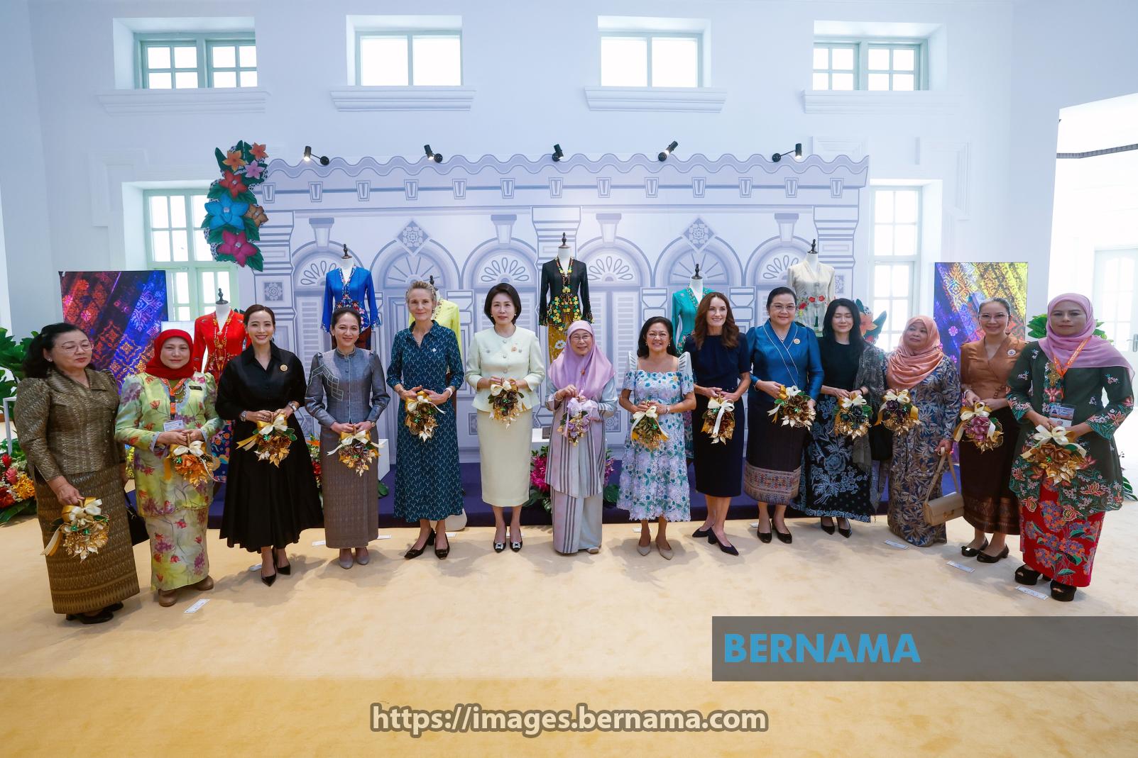 KUALA LUMPUR, Oct 27 -- (from left) Thananon Niramit (Thailand), Minister of Women, Family and Community Development Datuk Seri Nancy Shukri, Thananon Niramit (Thailand), Dr Pich Chanmony Hun Manet (Cambodia), Diana Fox Carney (Canada), Kim Hea Kyung (South Korea), Malaysian Prime Minister's wife, Datuk Seri Dr Wan Azizah Wan Ismail, Louise Araneta-Marcos (Philippines), Amanda Luxon (New Zealand), Vandara Siphandone (Laos) and Loo Tze Lui (Singapore) at the Spouses' Programme, in conjunction with the 47th ASEAN Summit at Carcosa Seri Negara.