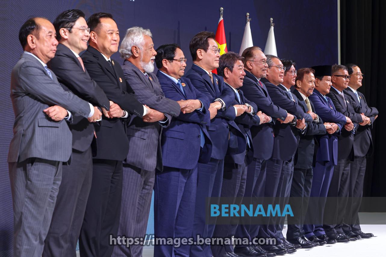 KUALA LUMPUR, Oct 27 — Prime Minister Datuk Seri Anwar Ibrahim together with China Premier Li Qiang, Japan Foreign Minister Motegi Toshimitsu, South Korea President Lee Jae Myung and ASEAN leaders during a photo session with traditional ASEAN handshake after the 28th ASEAN Plus Three Summit in conjunction with the 47th ASEAN Summit and Related Summits at the Kuala Lumpur Convention Centre today.