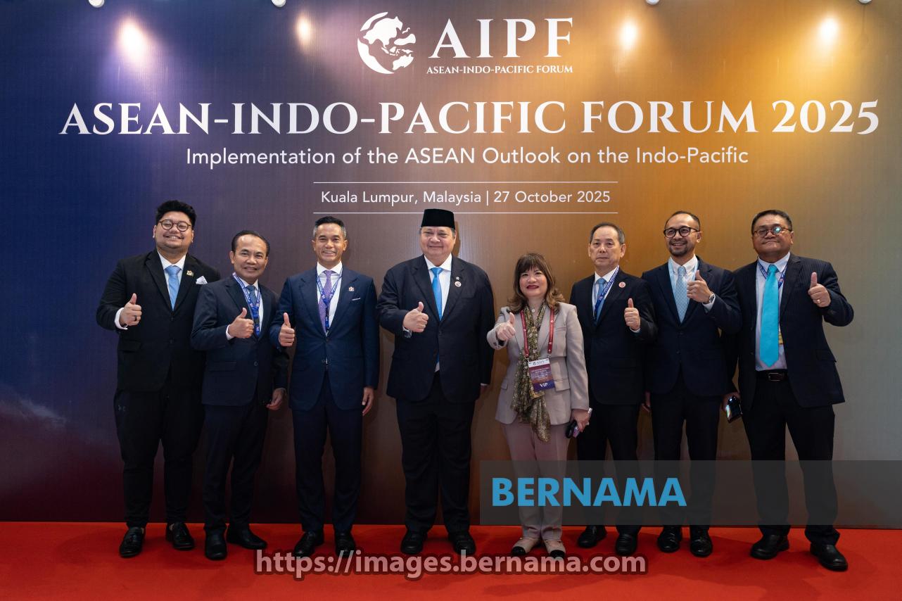 KUALA LUMPUR, Oct 27 — Indonesia's Coordinating Minister for Economic Affairs, Airlangga Hartarto (fourth, left), poses for a group photo with delegates during the ASEAN-Indo-Pacific Forum (AIPF) 2025 today.