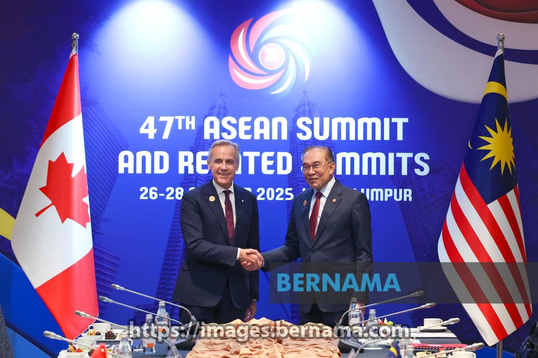 KUALA LUMPUR, Oct 27 -- Prime Minister Datuk Seri Anwar Ibrahim shakes hands with Canada's Prime Minister Mark Carney (left) during a bilateral meeting held on the sidelines of the 47th ASEAN Summit and Related Summits at the Kuala Lumpur Convention Centre (KLCC) today.
