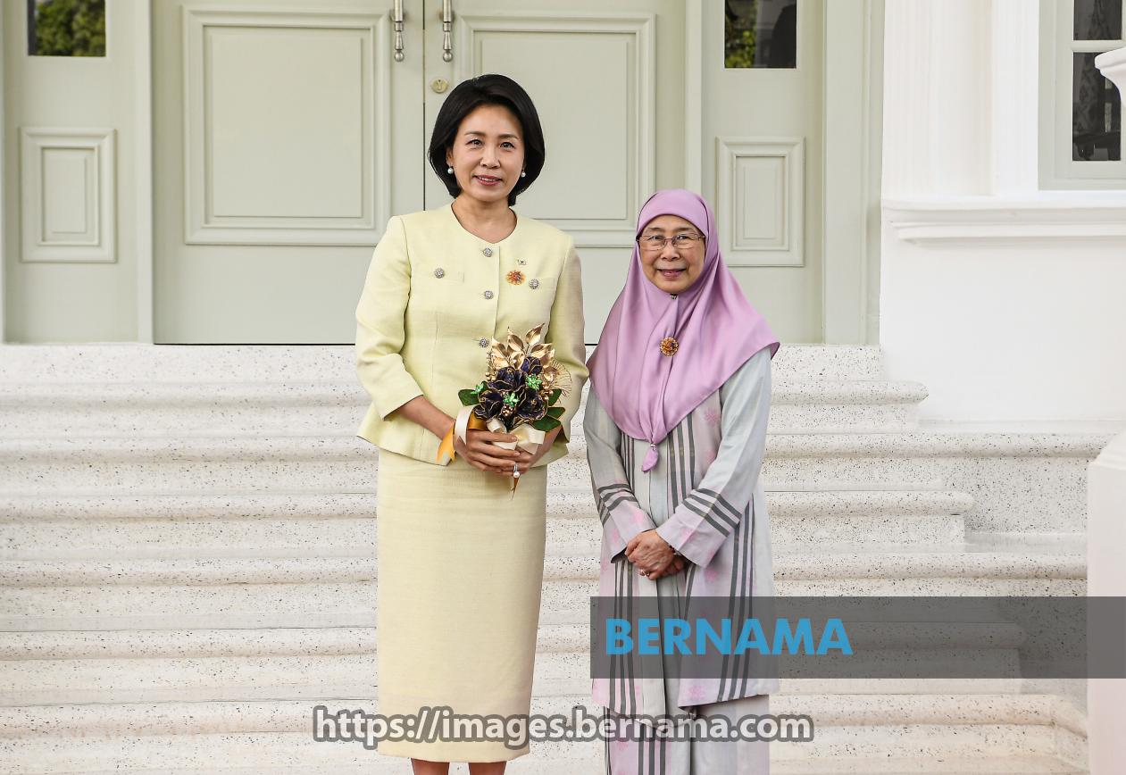 KUALA LUMPUR, Oct 27 -- Malaysian Prime Minister's wife, Datuk Seri Dr Wan Azizah Wan Ismail (right), warmly welcomes spouse of the President of South Korea, Kim Hea-kyung (left), at the Spouses' Programme at Carcosa Seri Negara, in conjunction with the ongoing 47th ASEAN Summit and Related Summits.