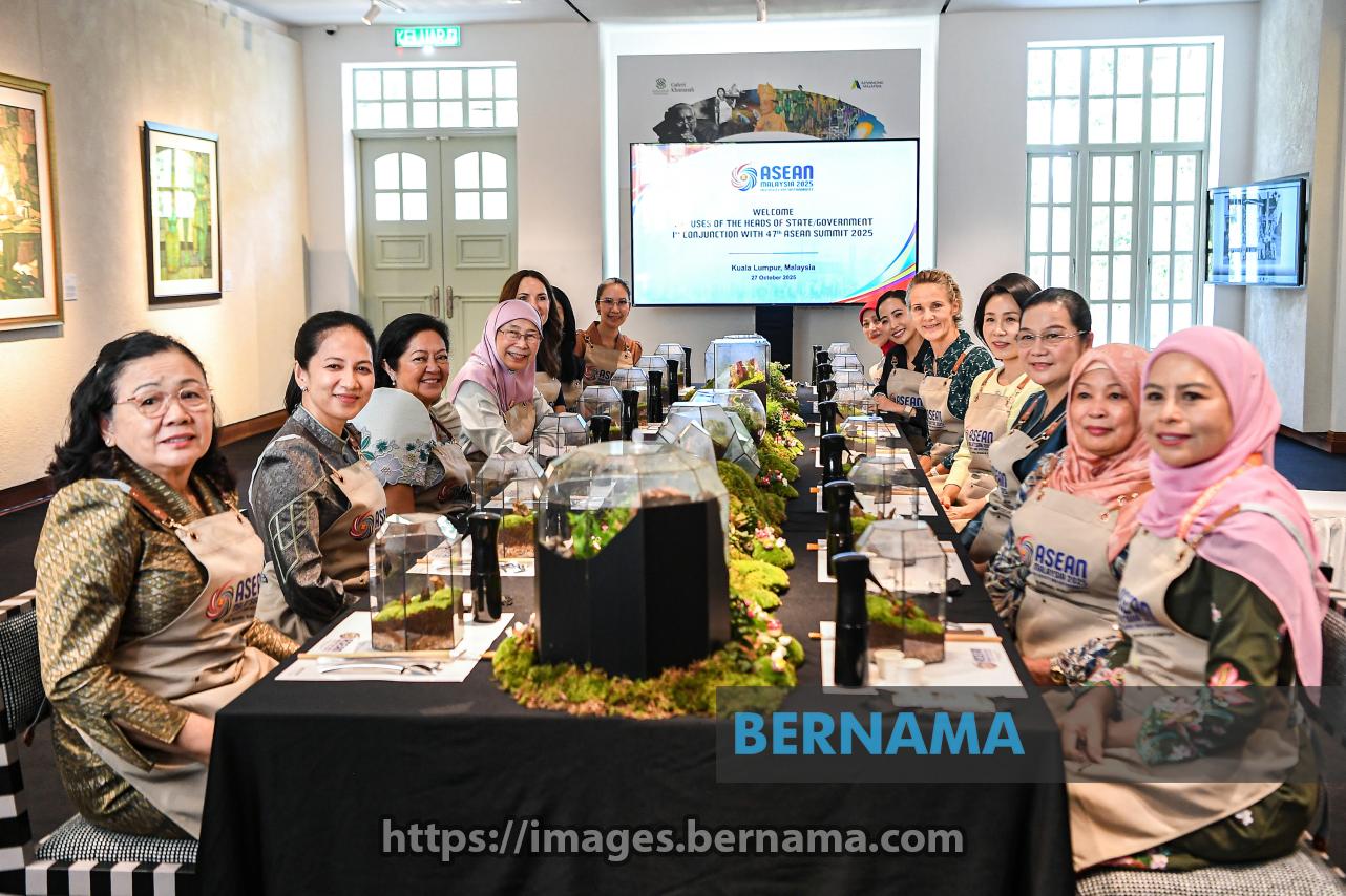 KUALA LUMPUR, Oct 27 -- Malaysian Prime Minister's wife Datuk Seri Dr Wan Azizah Wan Ismail (fourth left) poses for a group photo before the First Ladies take part in a terrarium-making activity, guided by local curators, allowing them to bring home a symbolic creation of nature and creativity during the Spouses' Programme in conjunction with the 47th ASEAN Summit at Carcosa Seri Negara.