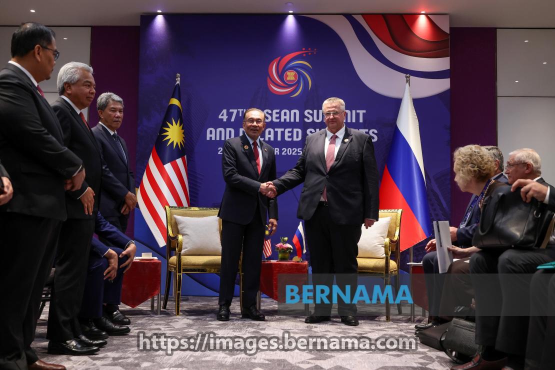 KUALA LUMPUR, Oct 27 -- Prime Minister Datuk Seri Anwar Ibrahim shakes hands with Russia's Deputy Prime Minister Aleksey Overchuk during a bilateral meeting on the sidelines of the 47th ASEAN Summit and Related Summits at the Kuala Lumpur Convention Centre (KLCC) today.
