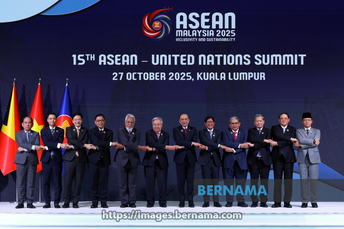 KUALA LUMPUR, Oct 27 -- Prime Minister Datuk Seri Anwar Ibrahim posing for a group photo with fellow ASEAN leaders at the 15th ASEAN- United Nations Summit in conjunction with the 47th ASEAN Summit and Related Summits at the Kuala Lumpur Convention Centre today.