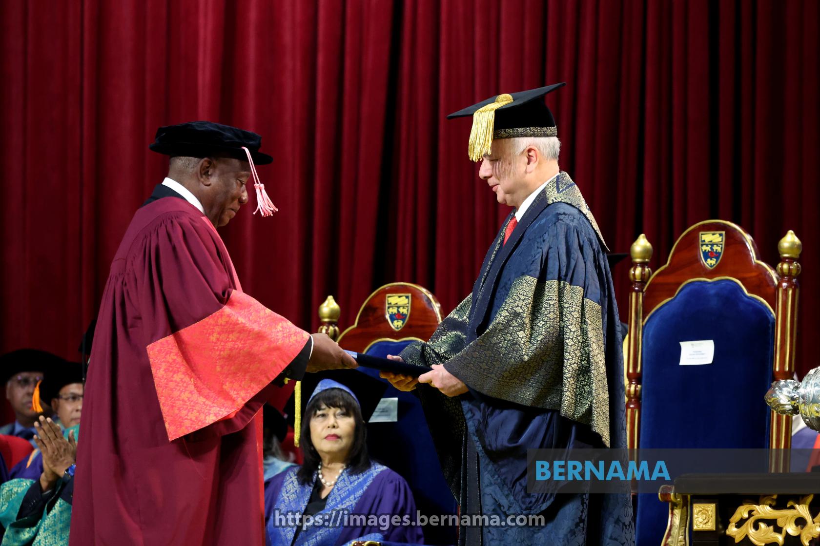 KUALA LUMPUR, Oct 27 -- Universiti Malaya (UM) Chancellor and Sultan of Perak, Sultan Nazrin Muizzuddin Shah, confers an Honorary Doctorate in International Relations on South African President Matamela Cyril Ramaphosa at the UM Special Convocation Ceremony here today.
