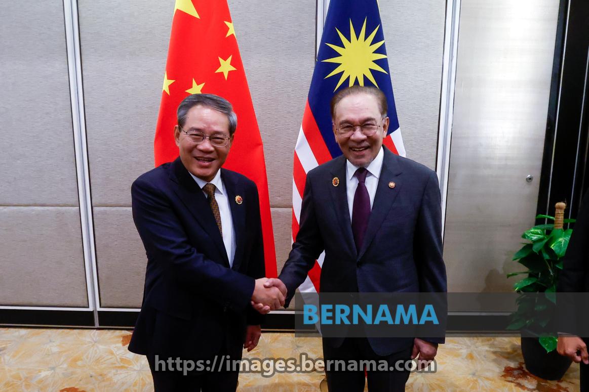 KUALA LUMPUR, Oct 28 -- Prime Minister Datuk Seri Anwar Ibrahim (right) shakes hands with Chinese Premier Li Qiang during a bilateral meeting on the sidelines of the 47th ASEAN Summit and Related Summits today.
