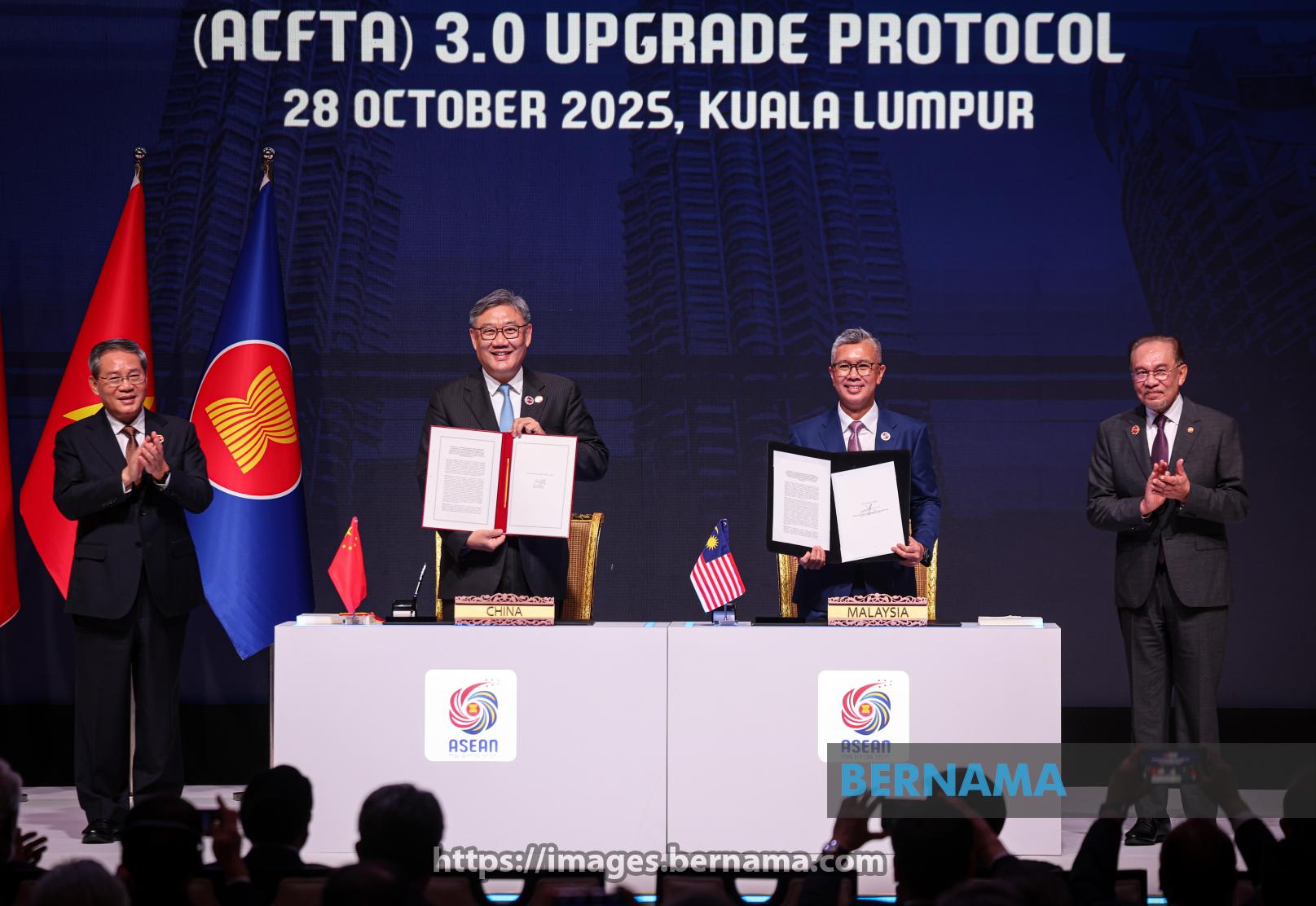 KUALA LUMPUR, Oct 28 — Prime Minister Datuk Seri Anwar Ibrahim and Chinese Premier Li Qiang witness Investment, Trade and Industry Minister Tengku Datuk Seri Zafrul Abdul Aziz and Chinese Commerce Minister Wang Wentao sign the ASEAN-China Free Trade Area (ACFTA) 3.0 Upgrade Protocol at the 47th ASEAN Summit and Related Summits at the Kuala Lumpur Convention Centre today.