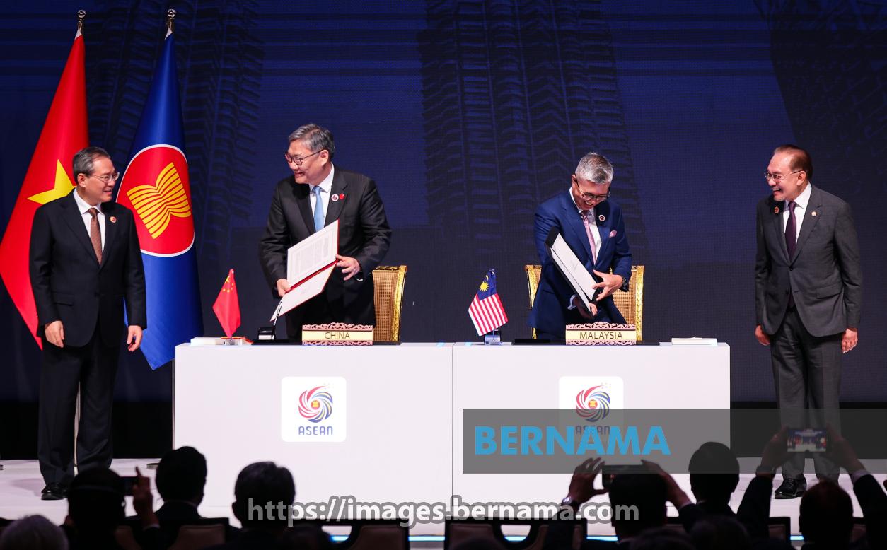 KUALA LUMPUR, Oct 28 — Prime Minister Datuk Seri Anwar Ibrahim and Chinese Premier Li Qiang witness Investment, Trade and Industry Minister Tengku Datuk Seri Zafrul Abdul Aziz and Chinese Commerce Minister Wang Wentao sign the ASEAN-China Free Trade Area (ACFTA) 3.0 Upgrade Protocol at the 47th ASEAN Summit and Related Summits at the Kuala Lumpur Convention Centre today.