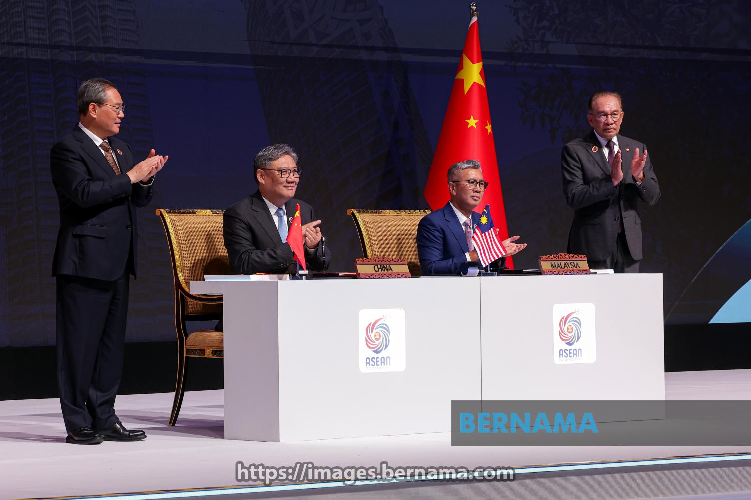 KUALA LUMPUR, Oct 28 -- Prime Minister Datuk Seri Anwar Ibrahim (right) and Chinese Premier Li Qiang (left) witness the signing of the ASEAN-China Free Trade Area (ACFTA) 3.0 Upgrade Protocol by Investment, Trade and Industry Minister Tengku Datuk Seri Zafrul Abdul Aziz and Chinese Commerce Minister Wang Wentao in conjunction with the 47th ASEAN Summit and Related Summits today.