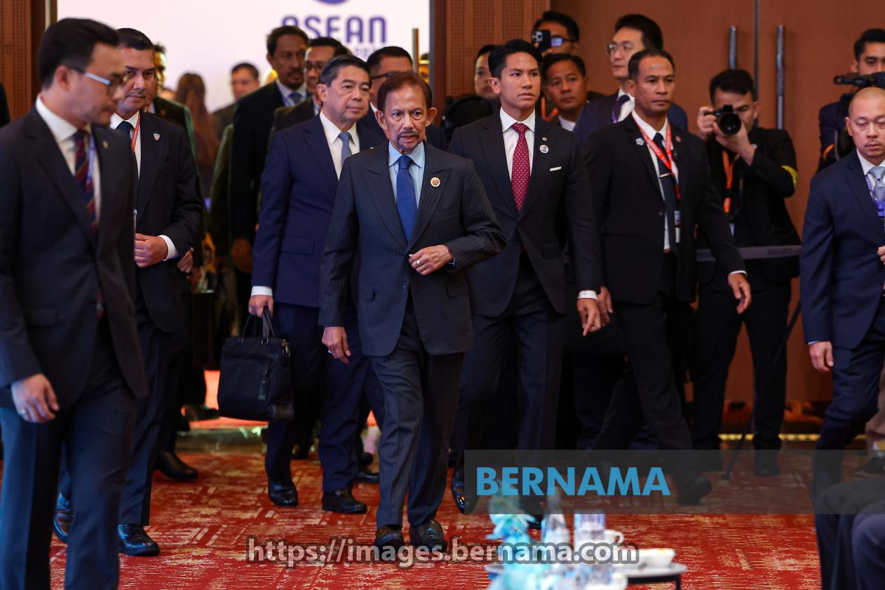 KUALA LUMPUR, Oct 28 -- Sultan of Brunei Sultan Hassanal Bolkiah accompanies his son, Prince Abdul Mateen Bolkiah at the 28th ASEAN-China Summit in conjunction with the 47th ASEAN Summit and Related Summits in Kuala Lumpur Convention Centre (KLCC) today.