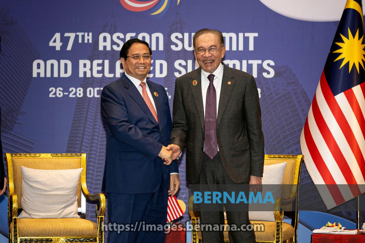 KUALA LUMPUR, Oct 28 -- Prime Minister Datuk Seri Anwar Ibrahim (right) with Vietnamese Prime Minister Pham Minh Chinh during a bilateral meeting on the sidelines of the 47th ASEAN Summit and Related Summits today.