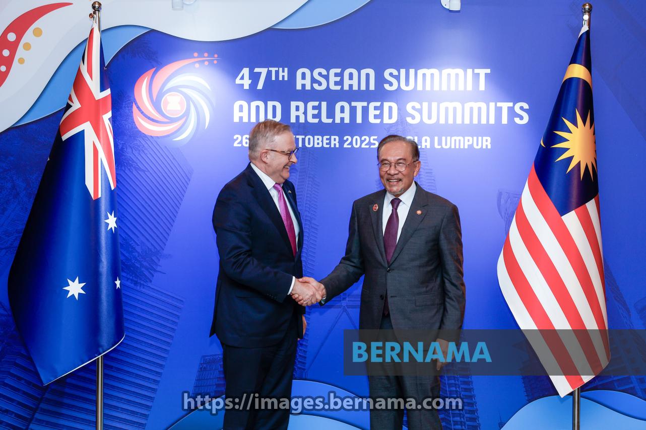 KUALA LUMPUR, Oct 28 -- Prime Minister Datuk Seri Anwar Ibrahim and his Australian Counterpart Anthony Albanese shake hands before attending the the 3rd Malaysia–Australia Annual Leaders' Meeting (ALM) on the sidelines of the 47th ASEAN Summit and Related Summits at the Kuala Lumpur Convention Centre today.