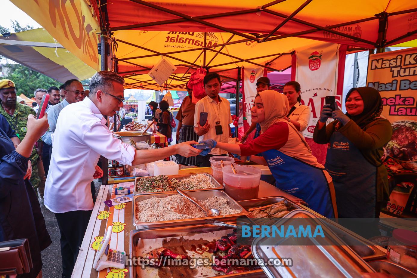 KUALA LUMPUR, 17 Mac -- Menteri Komunikasi Datuk Fahmi Fadzil (kiri) mengedarkan risalah kepada peniaga bazar ketika hadir pada Kempen Advokasi Suruhanjaya Komunikasi dan Multimedia Malaysia (MCMC) bagi menghebahkan kesedaran tentang penggunaan media sosial dikalangan kanak-kanak bawah umur di Bazar Ramadan Wangsa Maju hari ini.
