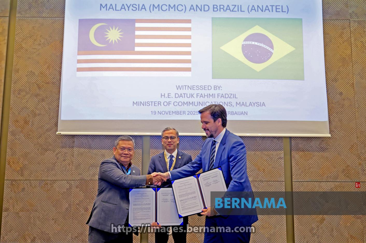 BAKU(Azerbaijan), Nov 19 -- The Malaysian Communications and Multimedia Commission (MCMC) and Brazil's National Telecommunications Agency (ANATEL) are signing a Memorandum of Understanding (MoU) today in the field of Telecommunications and Information and Communications Technology (ICT).