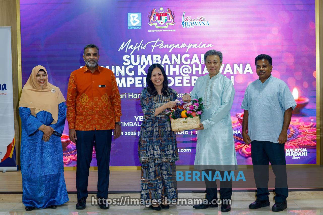 KUALA LUMPUR, 13 Okt -- Timbalan Menteri Komunikasi Teo Nie Ching menerima cenderahati daripada Pengerusi Pertubuhan Berita Nasional Malaysia (Bernama) Datuk Seri Wong Chun Wai pada Majlis Penyampaian Sumbangan Tabung Kasih @ HAWANA sempena Deepavali di Wisma Bernama hari ini.