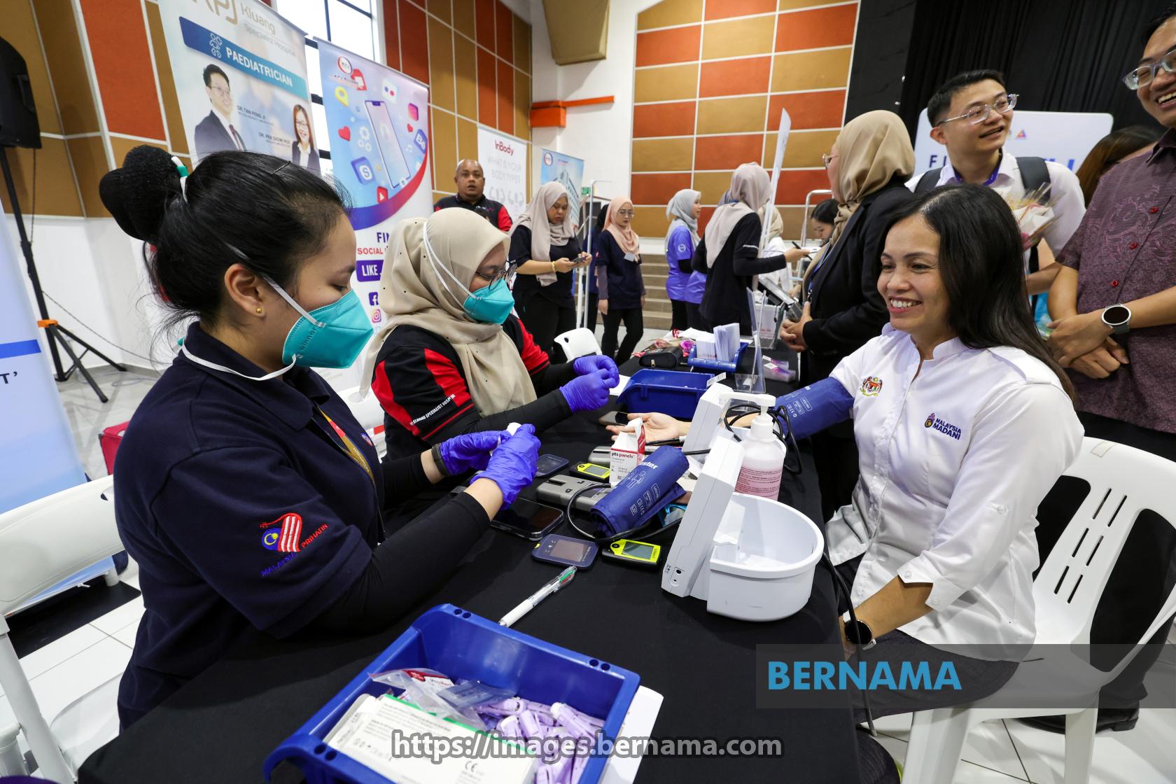 KULAI, 28 Feb -- Timbalan Menteri Komunikasi yang juga Ahli Parlimen Kulai, Teo Nie Ching (duduk, kanan) melakukan pemeriksaan kesihatan pada Majlis 'Future Health 4 All : Kesihatan Menghubungkan Rakyat' di Dewan Raya Putra hari ini.