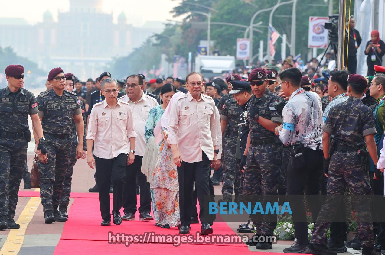 PUTRAJAYA, 31 Ogos -- Perdana Menteri Datuk Seri Anwar Ibrahim (kanan) diiringi Menteri Komunikasi Datuk Fahmi Fadzil (tiga, kiri) ketika hadir pada sambutan Hari Kebangsaan 2025 di Dataran Putrajaya hari ini.