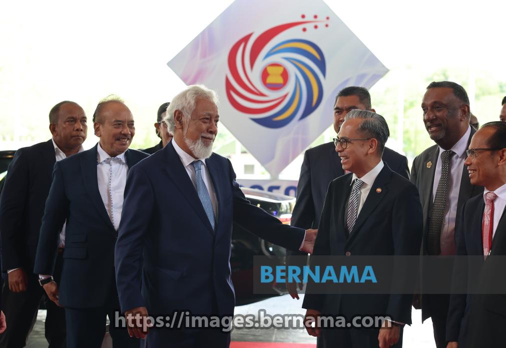 SEPANG, Oct 29 — Timor-Leste Prime Minister Kay Rala Xanana Gusmão is greeted by Minister of Communications Datuk Fahmi Fadzil upon arrival at the Bunga Raya Complex before departing home after attending the 47th ASEAN Summit and Related Summits today.